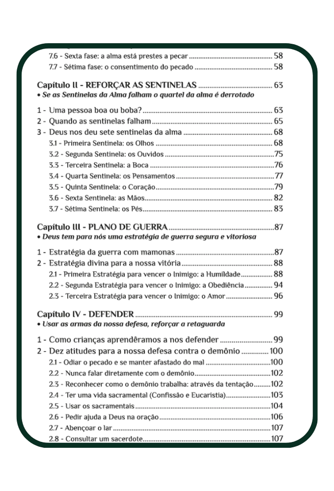 Nesta obra, fundada na Literatura Sagrada e nos ensinamentos da Igreja Católica, o autor nos mostra que vivemos em constante batalha espiritual e que – por falta de conhecimento – podemos nos tornar alvos fáceis dos nossos inimigos.